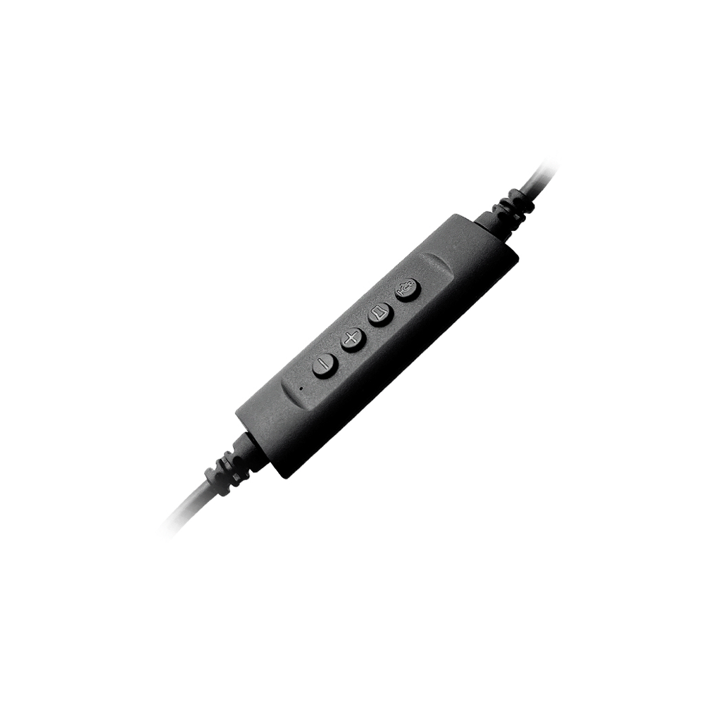 Incorpora un micrófono omnidireccional con brazo giratorio (hasta 270°) que permite ubicarlo fácilmente para una captación de voz estable. En el cable USB viene una consola de control (silenciar micrófono, silenciar audífonos y botones de volumen) para ajustar audio y gestionar llamadas sin salir de la pantalla. La conexión USB 2.0 garantiza compatibilidad plug-and-play con Windows y Mac OS.