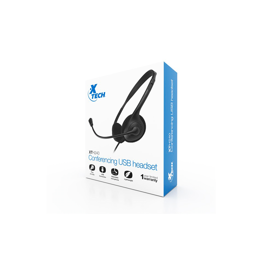 El Auricular con Micrófono Xtech XTH-240 es un headset USB diseñado para videoconferencias, clases y llamadas en PC. Su diseño ligero y práctico lo hace ideal para uso prolongado en oficinas y entornos de teletrabajo, ofreciendo una conectividad plug-and-play por USB para instalación rápida.