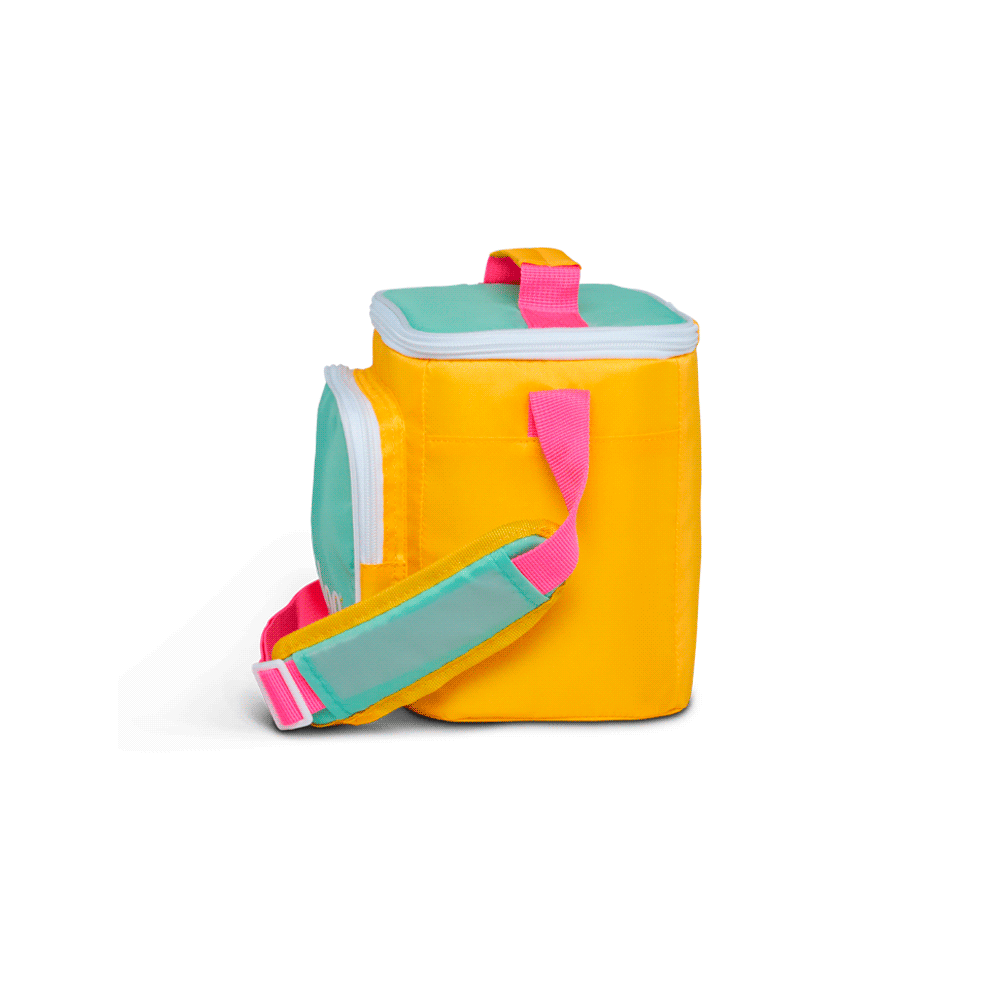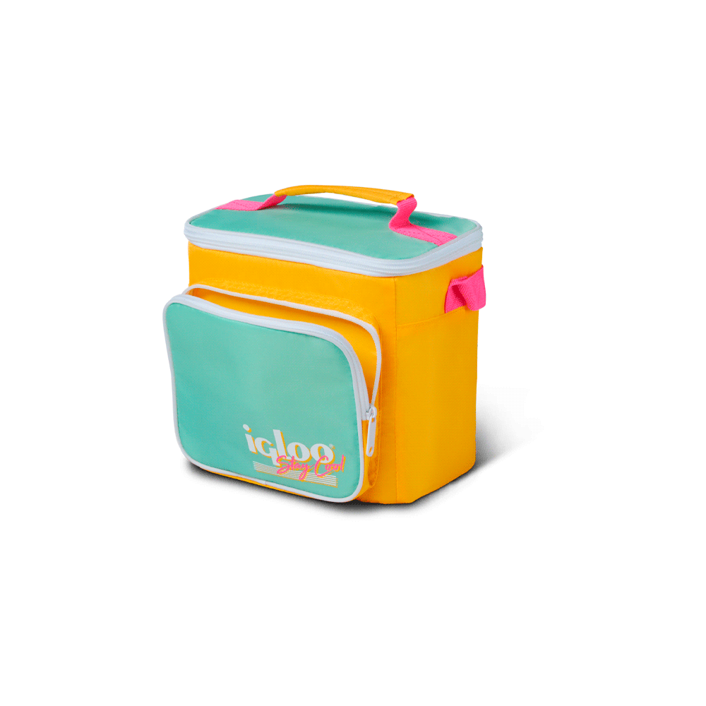 Bolsa Térmica Igloo Retro 9 Latas – Vertical Lunch diseñada para quienes buscan estilo y funcionalidad en un tamaño compacto. Su estética retro en color amarillo con detalles verde agua la convierte en una pieza llamativa para el día a día, ideal para llevar bebidas, almuerzo o snacks a la oficina, la escuela o salidas cortas.