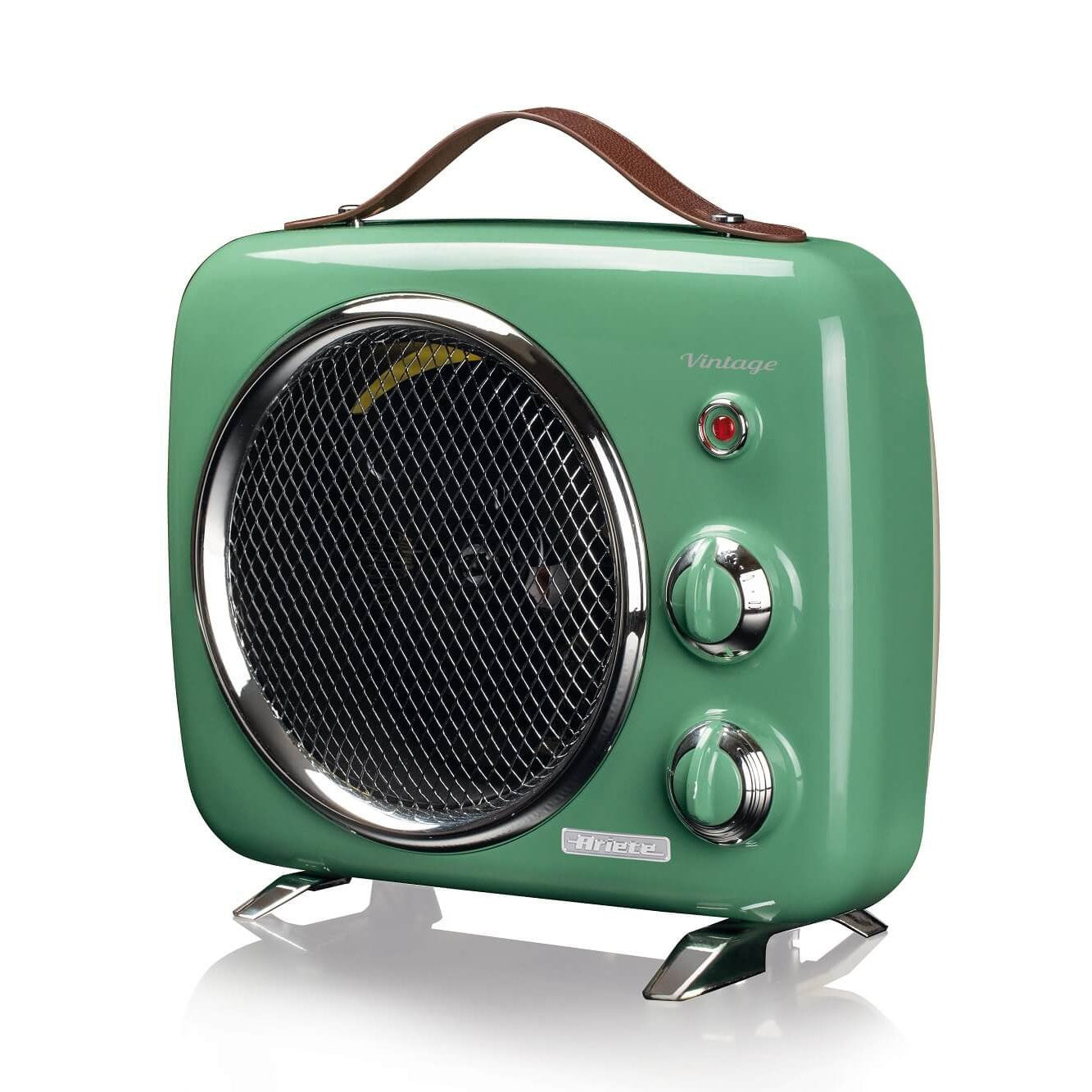 La Estufa Vintage Ariete Verde combina un diseño retro inspirado en los años 50 con la funcionalidad de un calefactor moderno: líneas suaves, detalles cromados y un acabado en color pastel que la convierte en un elemento decorativo además de un aparato de calefacción.