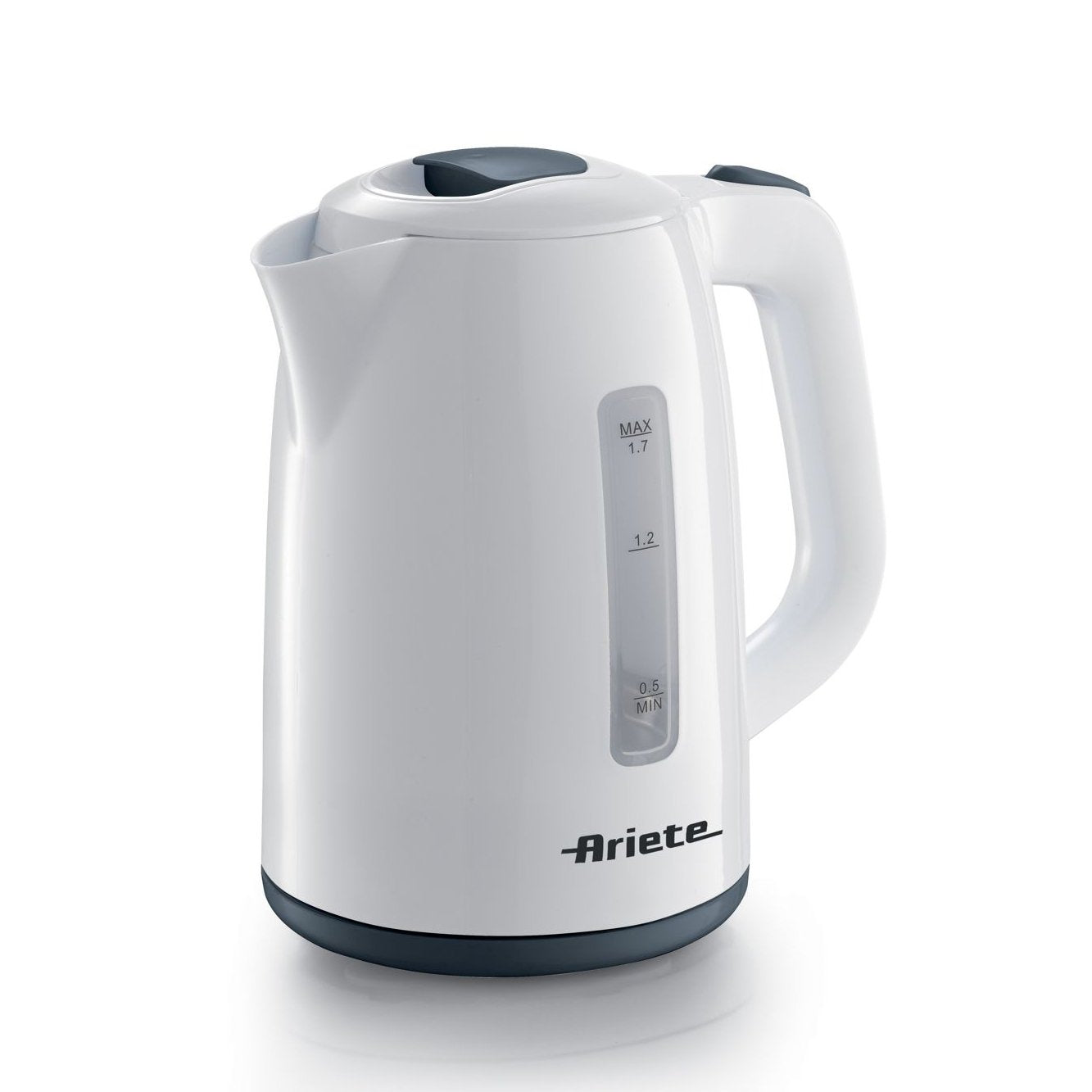 Descubre el hervidor de agua Ariete en su versión blanca, diseñado para hervir hasta 1,7 litros con rapidez y seguridad. Es una opción práctica para preparar té, café o para cocinar con mayor agilidad; Ariete comercializa modelos con acabados y detalles distintos dentro de la gama 1,7 L (por ejemplo los modelos 2875 y 2854/01), por lo que algunas especificaciones pueden variar según la referencia exacta.
