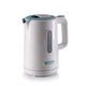 Uso y limpieza sencillos: la tapa abatible permite abrir y llenar con una sola mano; además incluye indicador del nivel de agua impreso en ambos lados (apto para diestros y zurdos) y un filtro antical extraíble y lavable que facilita el mantenimiento. Pies antideslizantes y recogecable completan la practicidad de esta mini hervidora.