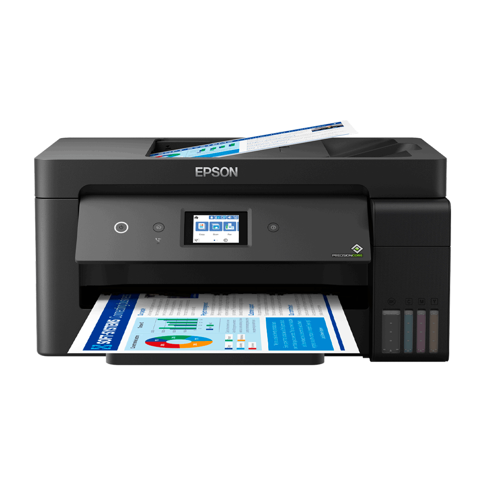 La Epson EcoTank L14150 es una impresora multifuncional 4 en 1 diseñada para pymes y oficinas que necesitan imprimir sin interrupciones hasta formato A3+. Su sistema EcoTank elimina la dependencia de cartuchos, usando botellas de tinta codificadas para un rellenado sencillo y sin derrames, con un rendimiento de hasta 7.500 páginas en negro o 6.000 páginas a color con las botellas de inicialización y reemplazo oficiales.