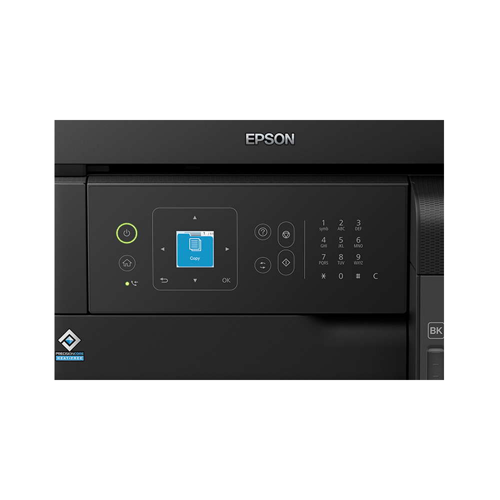 En calidad de impresión monta la tecnología PrecisionCore con resolución máxima de hasta 4,800 x 1,200 dpi y gotas de tamaño mínimo de 3.3 pl, apta para documentos nítidos y fotografías a nivel doméstico/oficina. Sus velocidades ISO son de hasta 15 ppm en monocromo y 8 ppm en color, además de ofrecer salida rápida de la primera página. Para conectividad ofrece USB, Ethernet, Wi‑Fi, Wi‑Fi Direct y compatibilidad con Apple AirPrint, Mopria y la app Epson Smart Panel para impresión y gestión móvil.