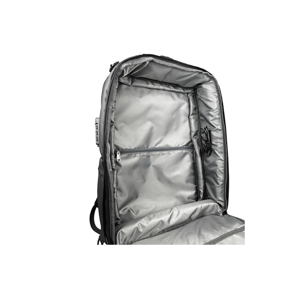 Su diseño práctico incluye un puerto USB externo para cargar tu teléfono o tablet (requiere power bank, no incluido), una cerradura de combinación de 3 dígitos y un bolsillo antirrobo ubicado en el panel posterior para mayor protección de tus objetos de valor. Estas características la hacen ideal tanto para desplazamientos urbanos como para viajes.