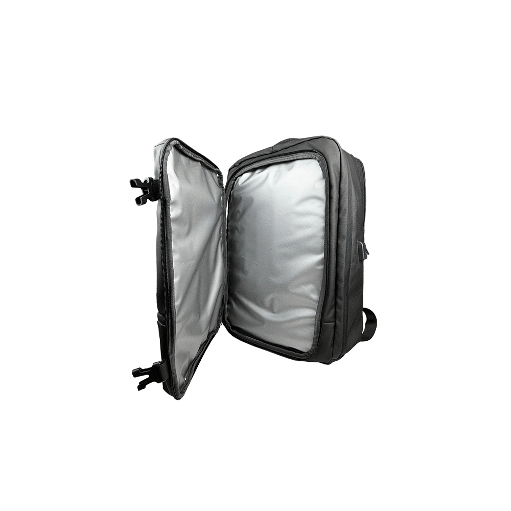 Fabricada en poliéster resistente al agua con cremalleras reforzadas, la Nomad combina durabilidad y estilo. Ofrece acolchado de alta densidad en la espalda y correas ultra acolchadas para mayor confort en trayectos largos, además de una correa para acoplarla al equipaje de mano cuando viajas.