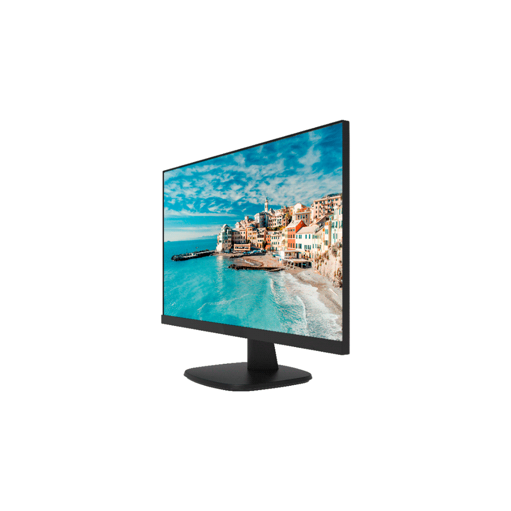 El monitor Hikvision DS-D5027FN de 27" ofrece una pantalla Full HD (1920×1080) con retroiluminación LED y diseño borderless, pensado para aplicaciones de vigilancia, control y uso general donde se requiere una imagen nítida y ángulos de visión amplios.