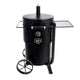Su cámara tipo barril ofrece 1.280 pulgadas cuadradas de espacio total de cocción distribuidas en tres rejillas revestidas de porcelana y una rejilla secundaria cromada, lo que permite cocinar varios cortes a la vez sin mezcla de sabores. La unidad incluye un indicador de temperatura montado en la tapa, una bandeja de carbón ajustable en altura (cuatro niveles) y varias compuertas de regulación para controlar el tiro y el humo con precisión.
