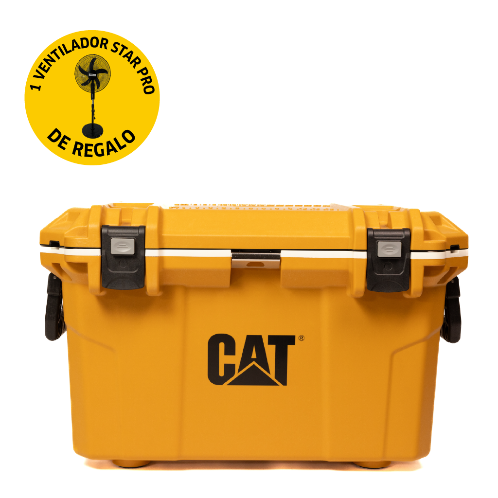 La conservadora CAT 70L en color amarillo combina resistencia y funcionalidad para uso en campo, obra, pesca o eventos. Con una capacidad real de 70 litros, está diseñada para soportar condiciones exigentes sin perder rendimiento ni movilidad.