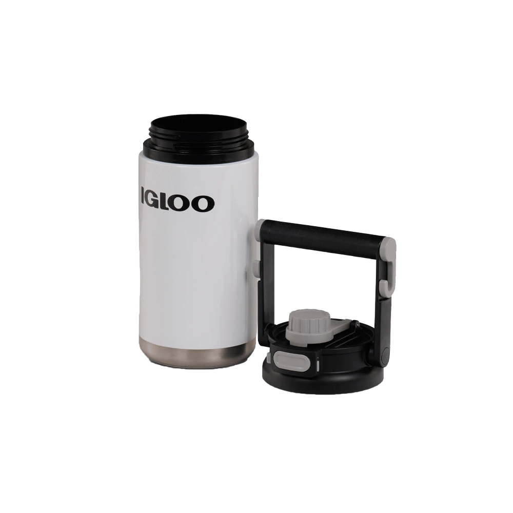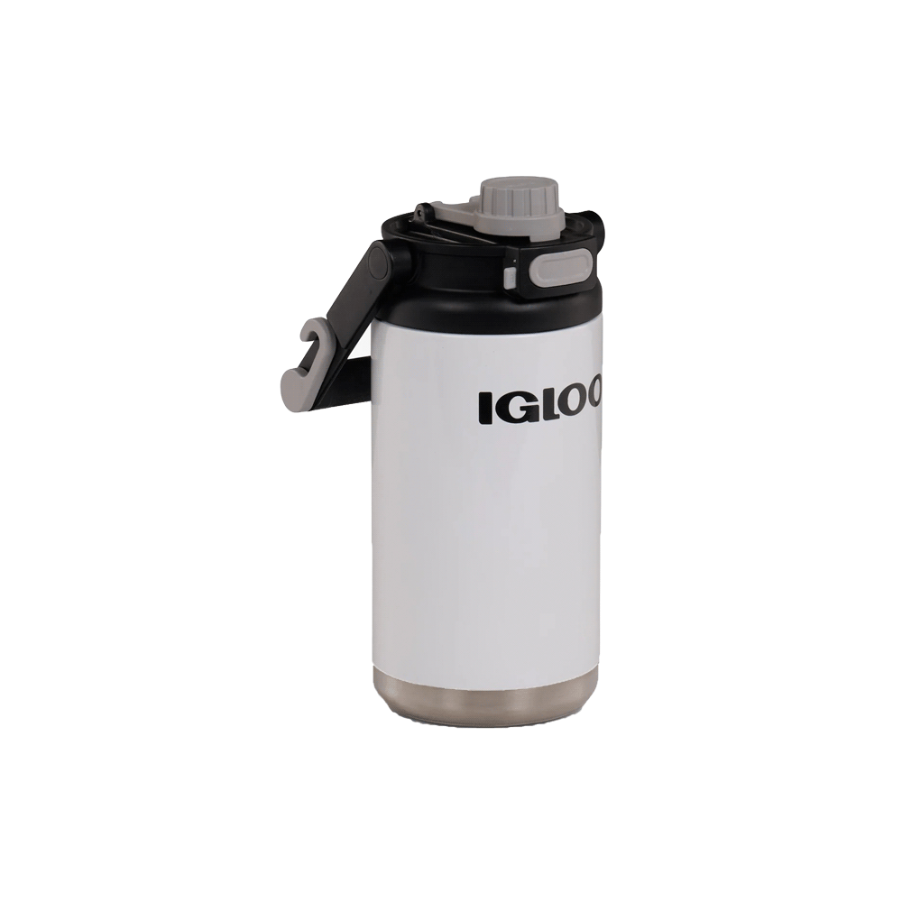 Termo Igloo 1,6L en color blanco, diseñado para acompañarte todo el día: en la oficina, la playa, el gimnasio o una salida de fin de semana. Su construcción en acero inoxidable y aislamiento de doble pared mantienen tus bebidas a la temperatura ideal mientras la botella se mantiene compacta y fácil de transportar.
