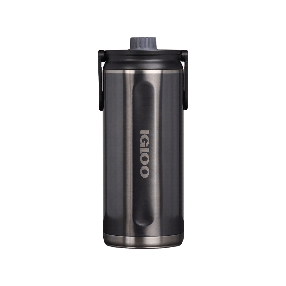 Termo Igloo 2.4L en acabado negro, diseñado para quienes necesitan llevar gran cantidad de bebida con rendimiento térmico profesional. Su cuerpo de acero inoxidable de doble pared con aislamiento al vacío y acabado exterior resistente al sudor mantiene las manos secas y evita condensación, además de ofrecer una construcción robusta y reutilizable ideal para uso diario y actividades al aire libre.