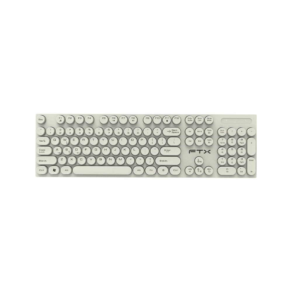 El Teclado USB FTXK22 es una solución práctica y elegante para tu escritorio: diseño de tamaño completo con teclado numérico integrado y distribución en idioma español, ideal para trabajo, estudio y uso doméstico. Su color blanco aporta una estética limpia y moderna que combina con cualquier setup.