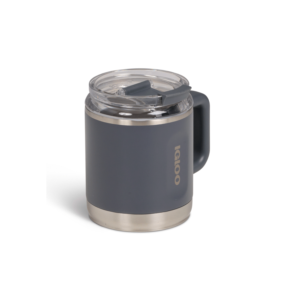 La Taza Térmica Igloo Coffee Mug 450 ml en color Carbonite es una alternativa resistente y reutilizable pensada para quienes llevan su café a todas partes. Su diseño compacto y la asa lateral permiten un agarre cómodo, mientras que la tapa abatible tipo "Flip n Sip" facilita beber sin derrames.