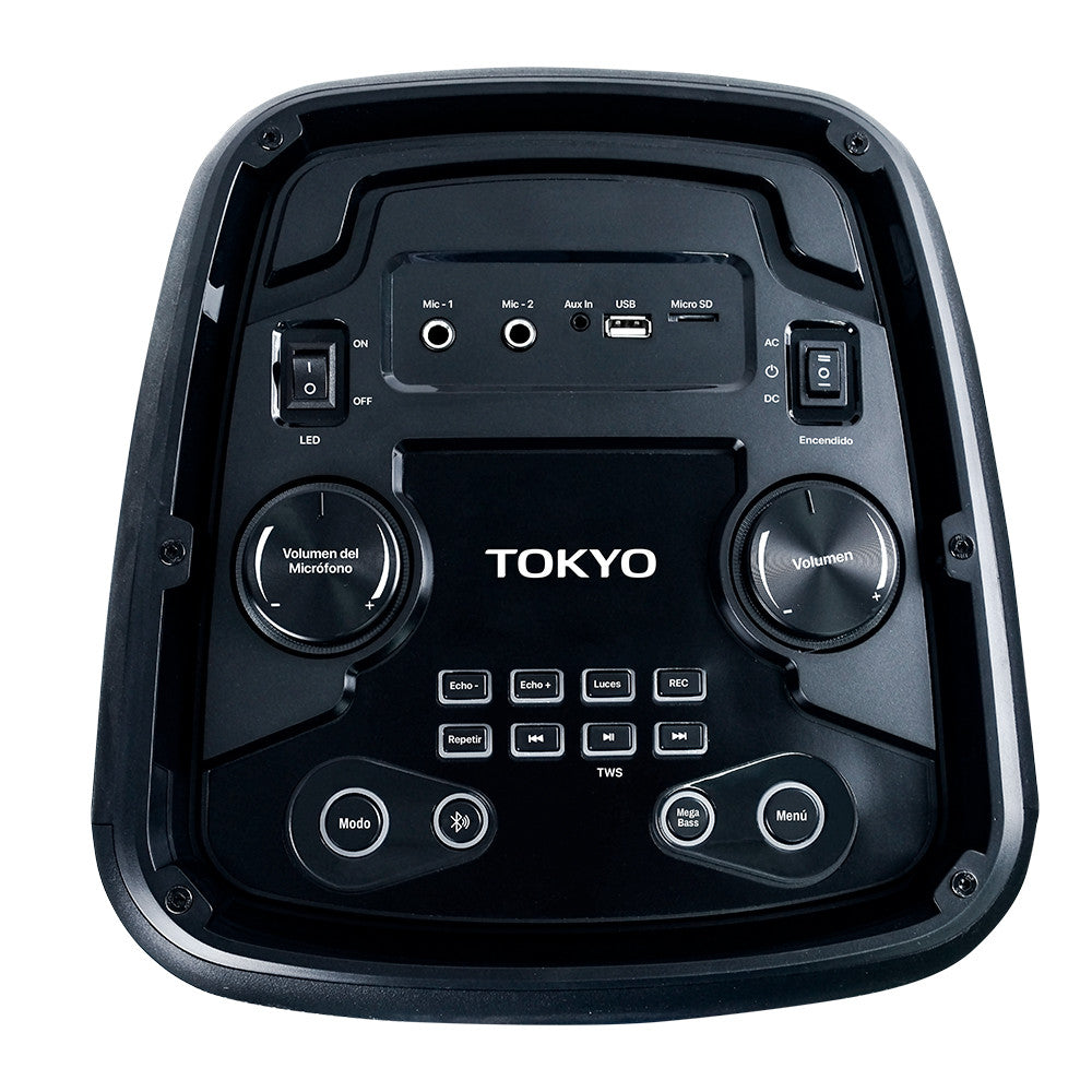 Compacto y fácil de transportar (30 x 30 x 62 cm), el Tokyo Party Pro combina practicidad y potencia en un formato pensado para el entretenimiento. Imágenes meramente ilustrativas.