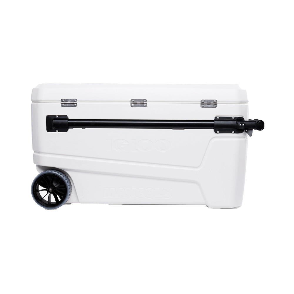 Conservadora Igloo Sunset Glide 104L (110 qt) — la hielera de gran capacidad pensada para viajes de pesca, campamentos y días de playa. Su amplia capacidad de 104 litros mantiene hasta 168 latas y guarda hielo durante días gracias a la combinación de la tecnología MaxCold® y el aislamiento THERMECOOL™.