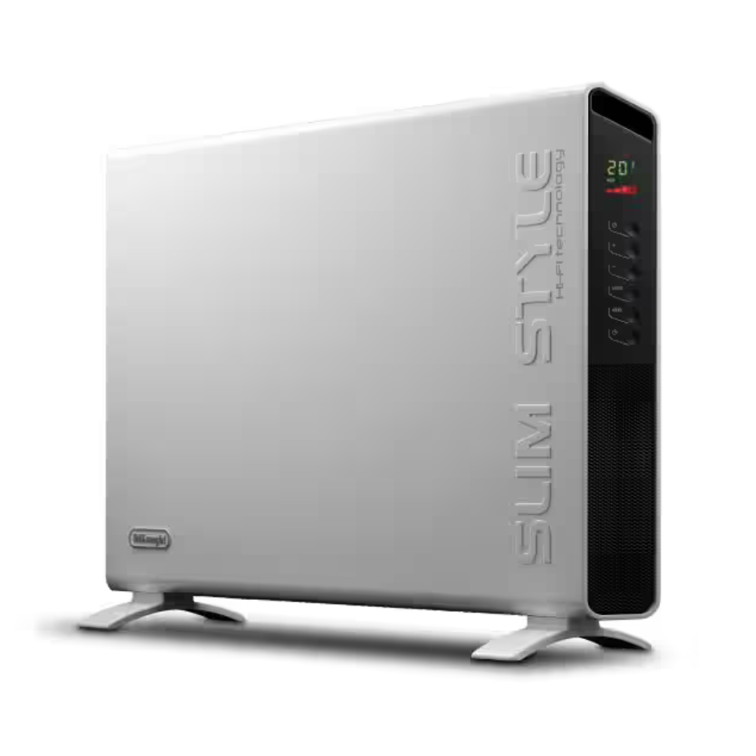 Estufa Digital De'Longhi Slim Style — la línea Slim Style de De'Longhi reúne diseño ultradelgado y tecnología de convección para ofrecer calefacción rápida y homogénea en habitaciones pequeñas y medianas. Muchos modelos de la gama incluyen panel de control digital, temporizador y modos de ventilación que mejoran la distribución del aire caliente sin aumentar el volumen del equipo.