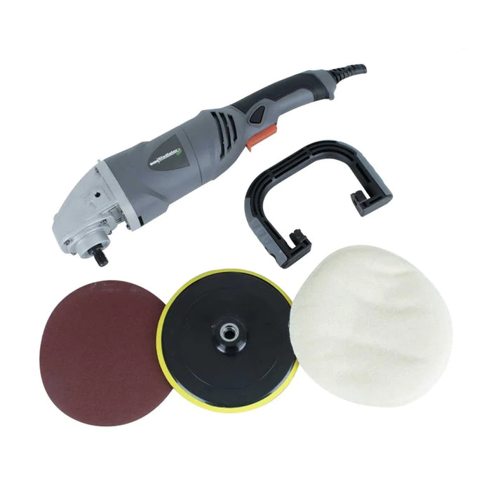 • Incluye: 1 paño de lustrar, 1 disco de lija, 1 llave de ajuste, 1 mango lateral y 1 juego de carbones.
