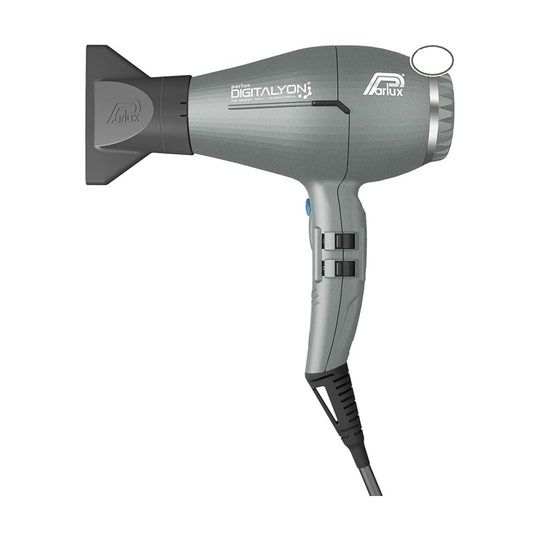 Parlux ha optimizado ergonomía y peso para uso profesional: el Digitalyon es ligero, equilibrado y silencioso, con controles suaves (2 velocidades y 4 temperaturas) y botón de aire frío para fijar peinados. Dependiendo de la fuente su peso se sitúa aproximadamente entre 395 g y 430 g; el cable tiene longitud profesional (aprox. 3–3.3 m). Está disponible en pack con difusor MagicSense en algunos distribuidores y suele incluir boquilla Slim además de una boquilla estándar.