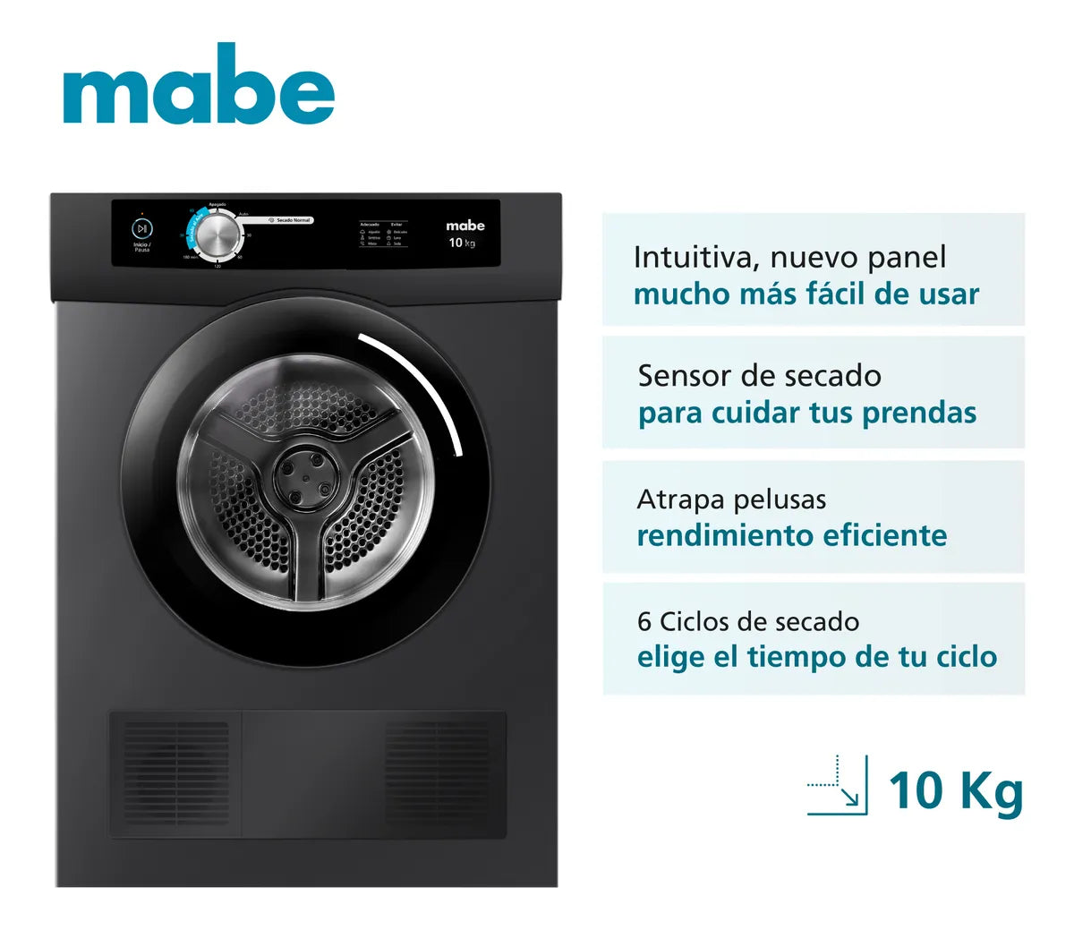• Modelo: Mabe SEM010VDCL0 — Capacidad: 10 kg (carga frontal).