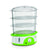 En cuanto a prestaciones, esta vaporera cuenta con 800 W de potencia y una capacidad total de 9 litros distribuidos en 3 cestillos con tapa; además incluye un práctico cuenco para cocinar arroz al vapor. El vapor está listo en solo 40 segundos y dispone de un temporizador de hasta 60 minutos con apagado automático. El depósito permite rellenarse externamente durante la cocción y lleva un indicador visible del nivel de agua para mayor comodidad.
